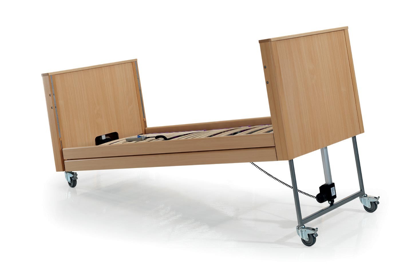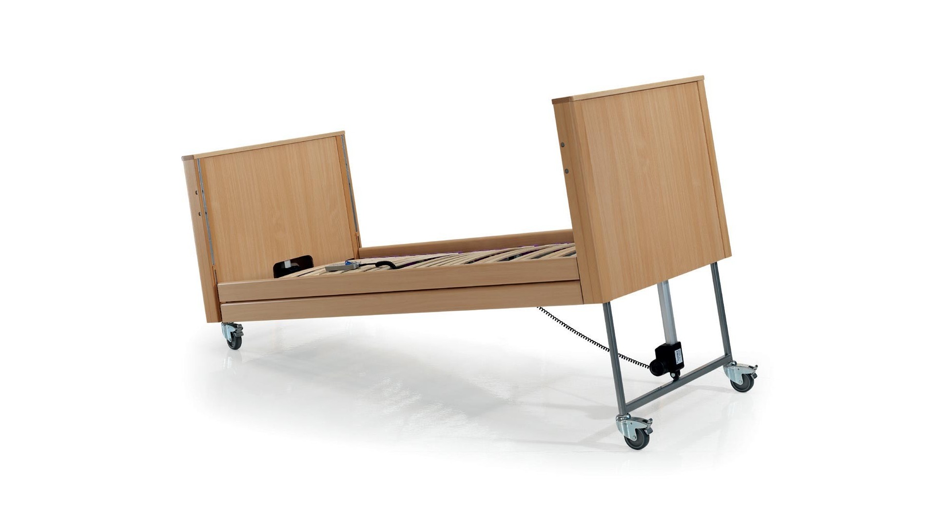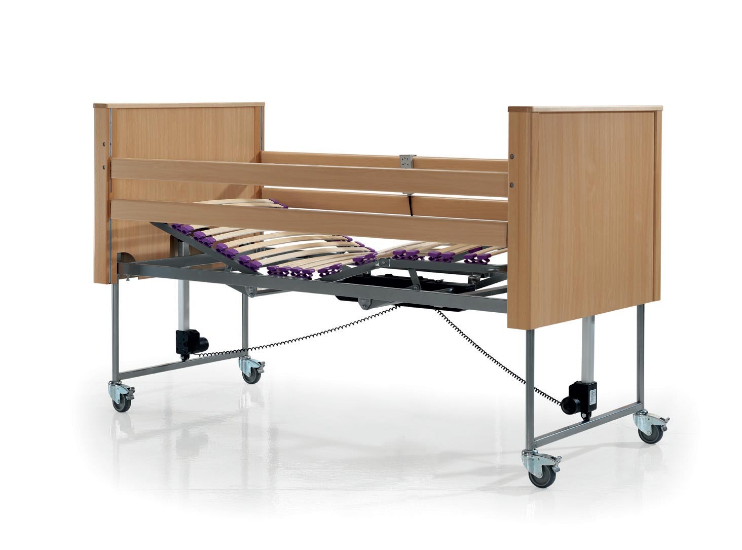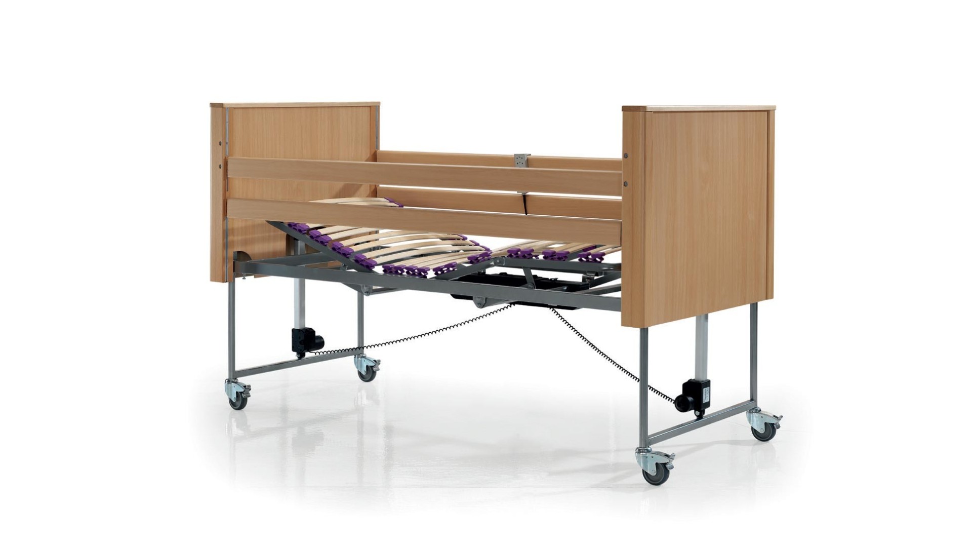 Lecho articulado de 4 planos y 3 articulaciones eléctricas, que permite ajustar respaldo, muslos y piernas de forma independiente.