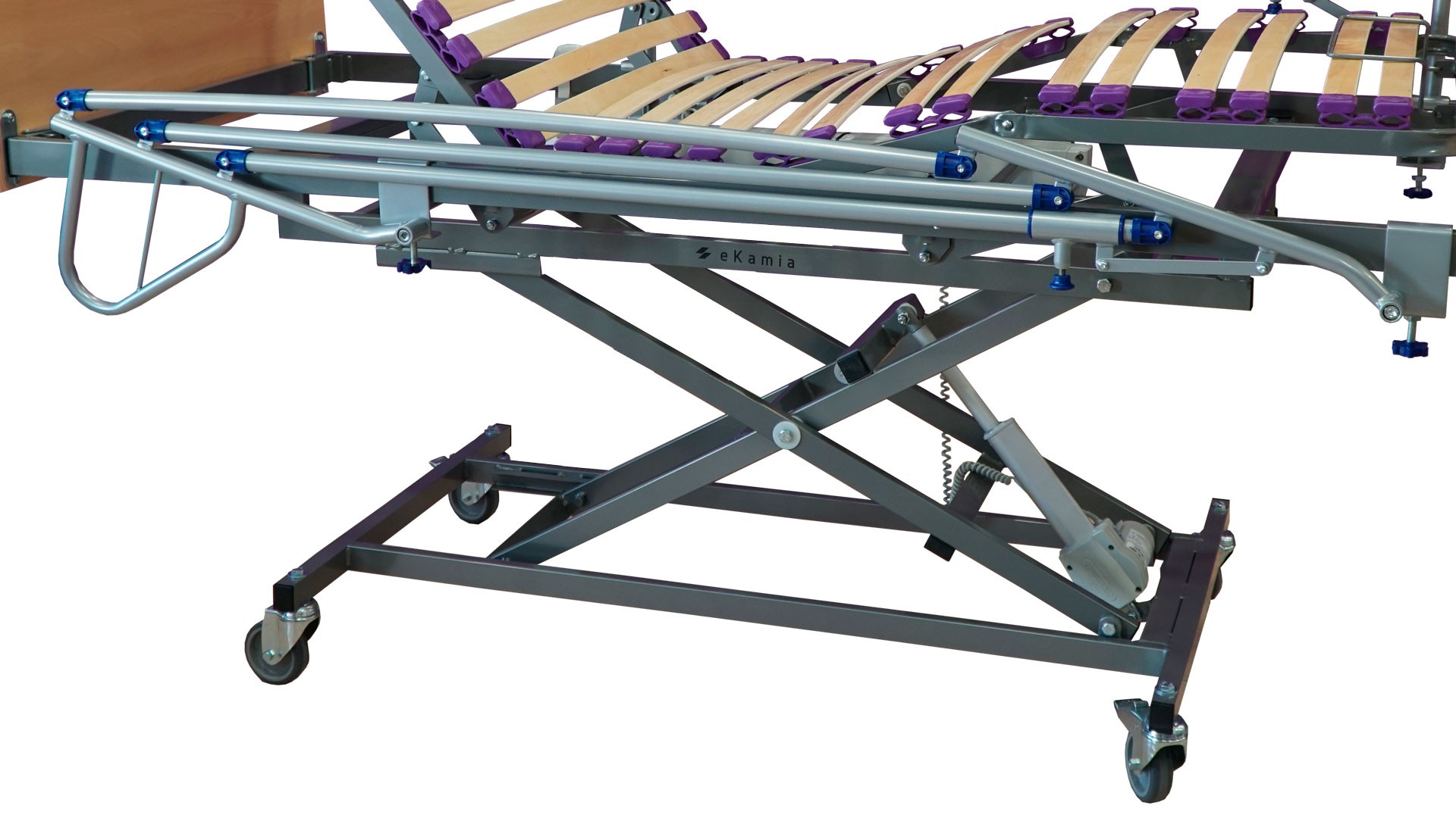 Estamos frente a un producto de alta calidad, diseñado y fabricado con esmero para el fin que está hecho. Por eso la cama está forma por una estructura con somier artículado eléctrico con carro elevador de 4 planos y 3 articulaciones (piernas y tronco). El carro elevador dispone de altura variable desde los 38,5 a los 82cm. Ideal para cuando se tiene que transferir al paciente/usuario desde la cama hacia la silla de ruedas y viceversa. La cama en sí cuenta con una gran estabilidad y rigidez y su montaje y desmontaje es muy sencillo.
