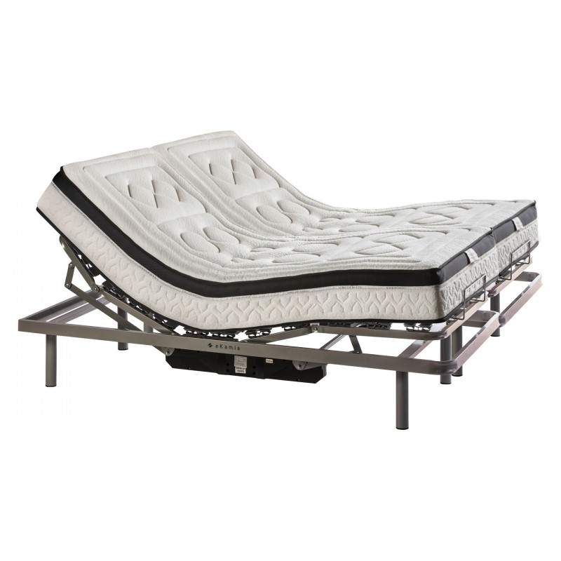 Esta combinación cuenta con la suma de dos camas articuladas eléctricas Eris con colchón LUA de 75cm,80cm o 90cm para permitir disponer de una cama completa de matrimonio con articulación independiente para cada lado de la cama.