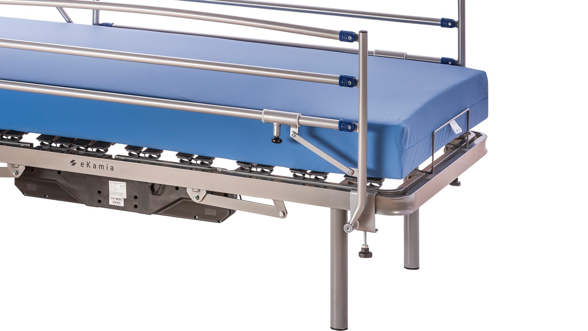 Cama articulada eléctrica Eris con colchón sanitario HR de 15cm de buena densidad, barandillas para ambos lados de la cama y patas de 35cm de altura.